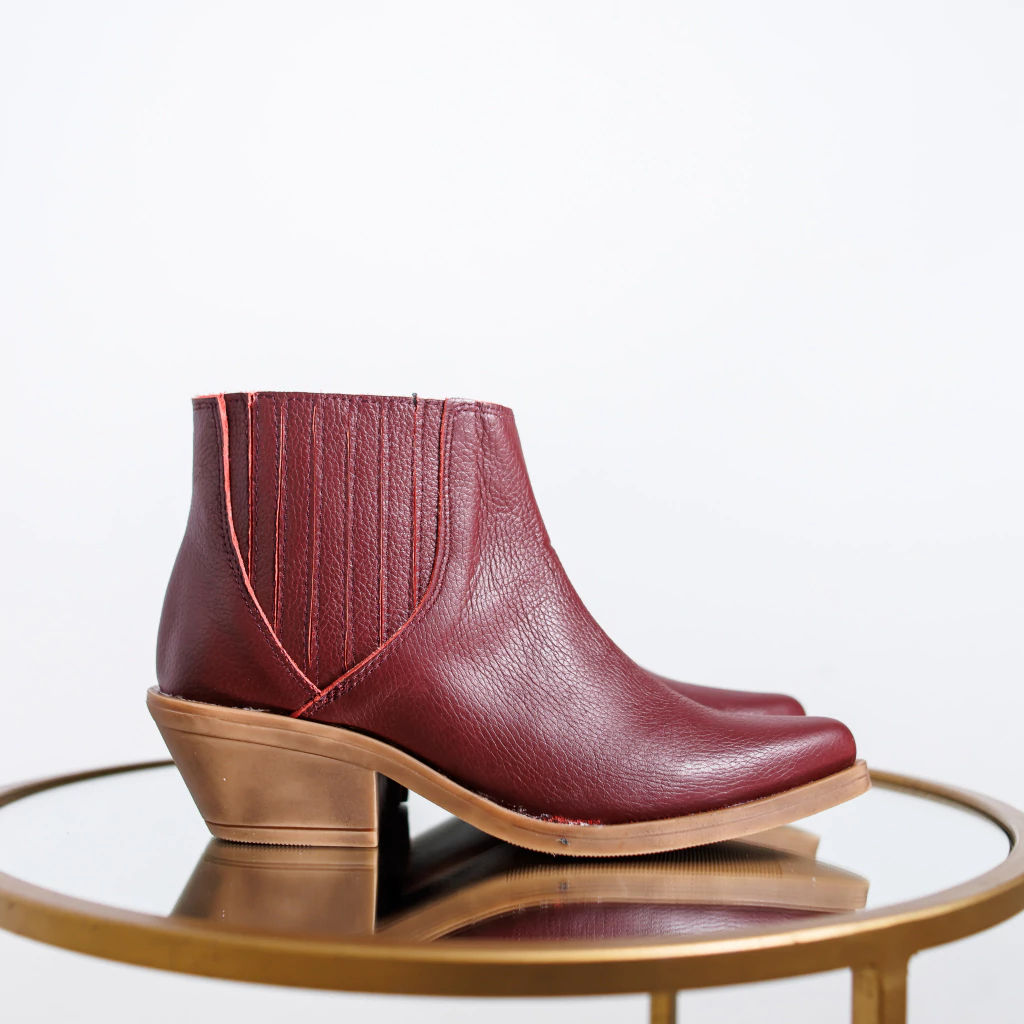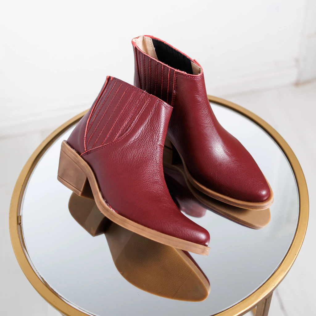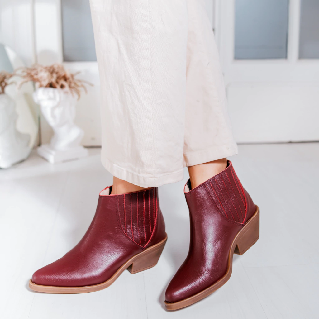CARACTERÍSTICAS La Bota Celina Bordó es una bota texana de mujer, confeccionada en cuero de alta calidad color bordó. Su diseño corto y moderno la hace ideal para complementar cualquier estilo con un toque distintivo.