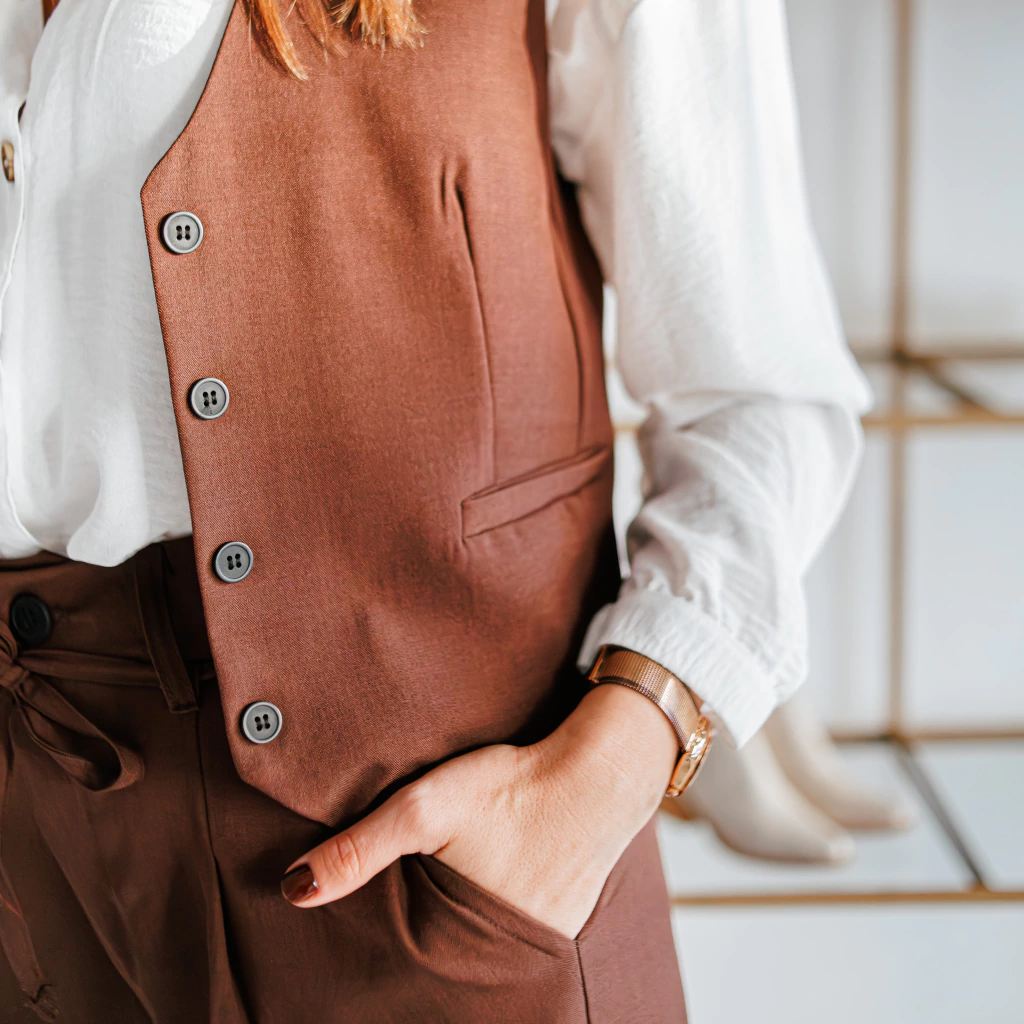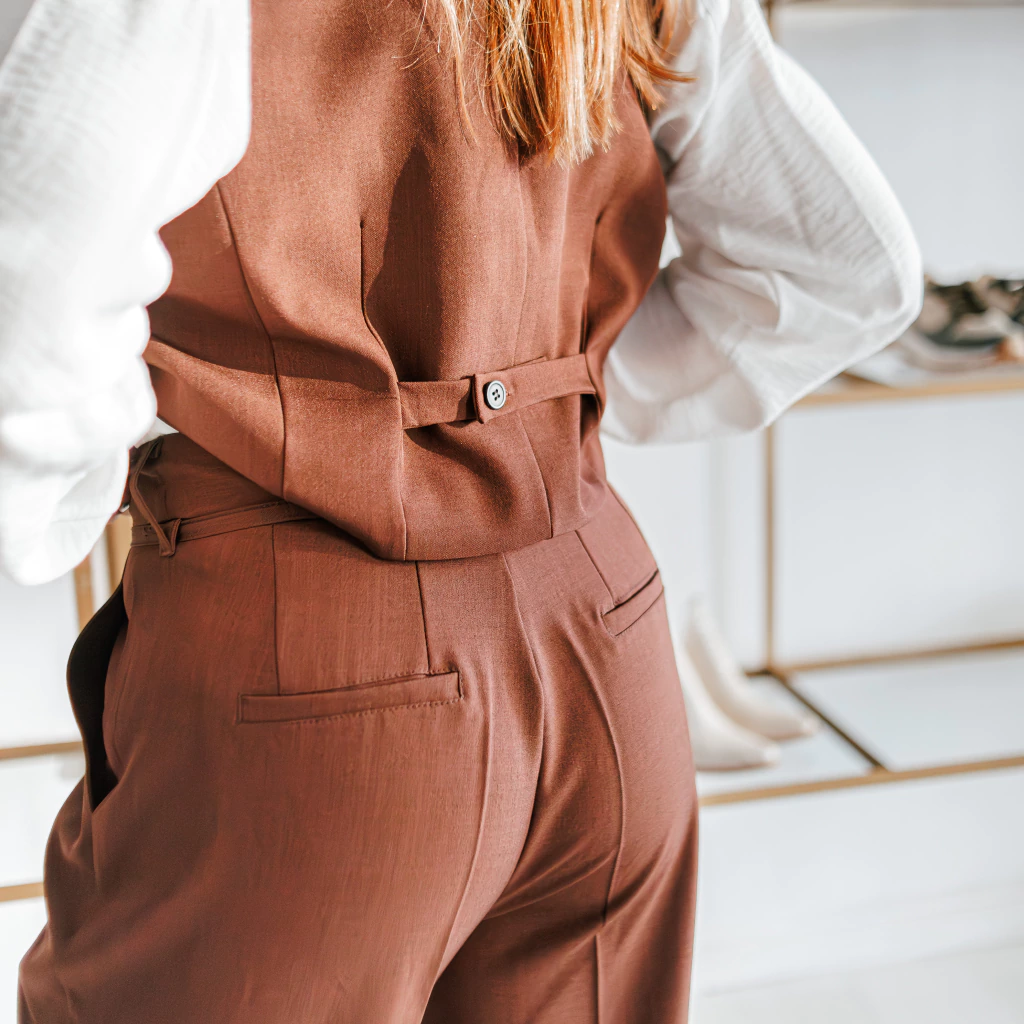 Perfecto para el trabajo o un evento especial, el Pantalón Sastrero Sofía Chocolate combina comodidad y estilo en una sola prenda.