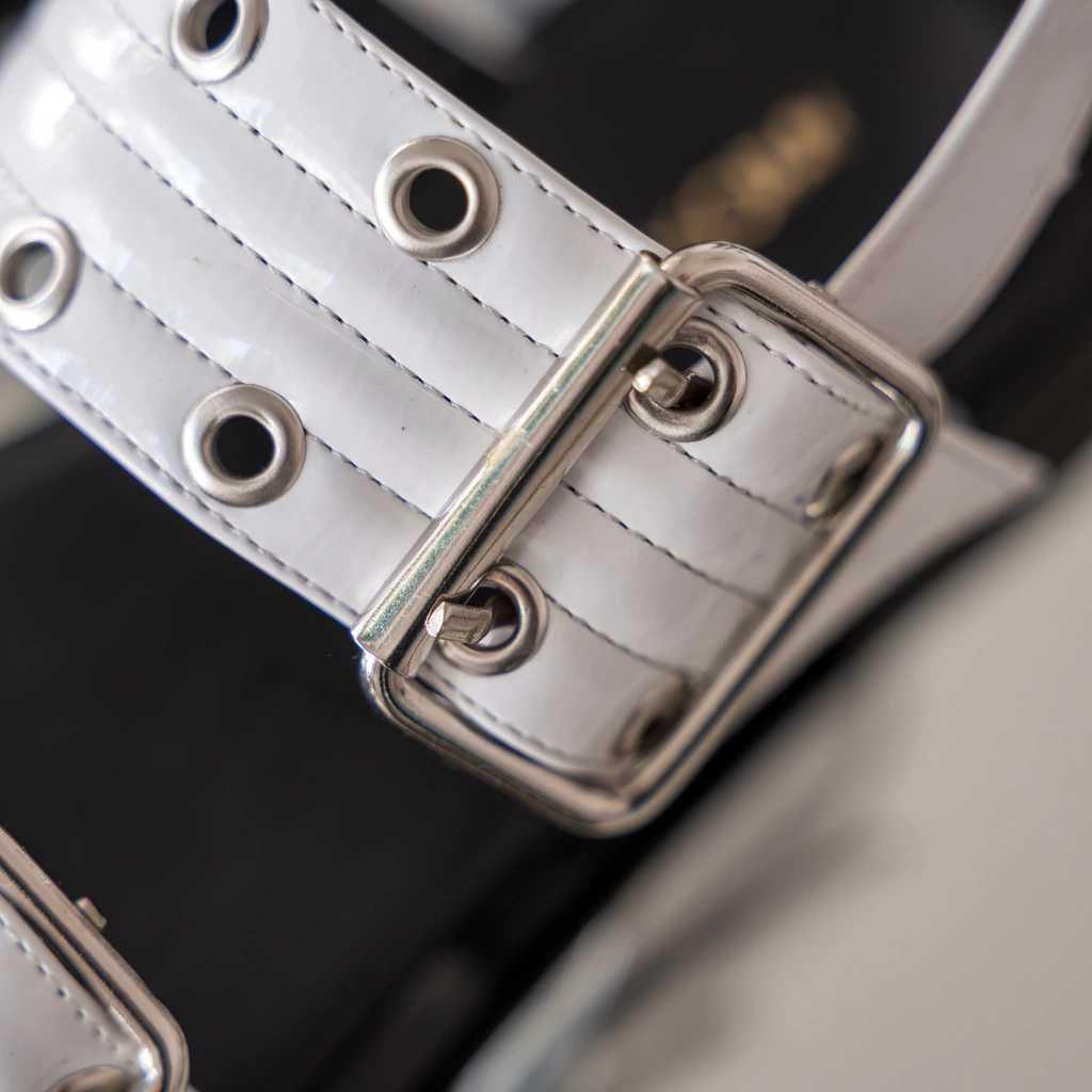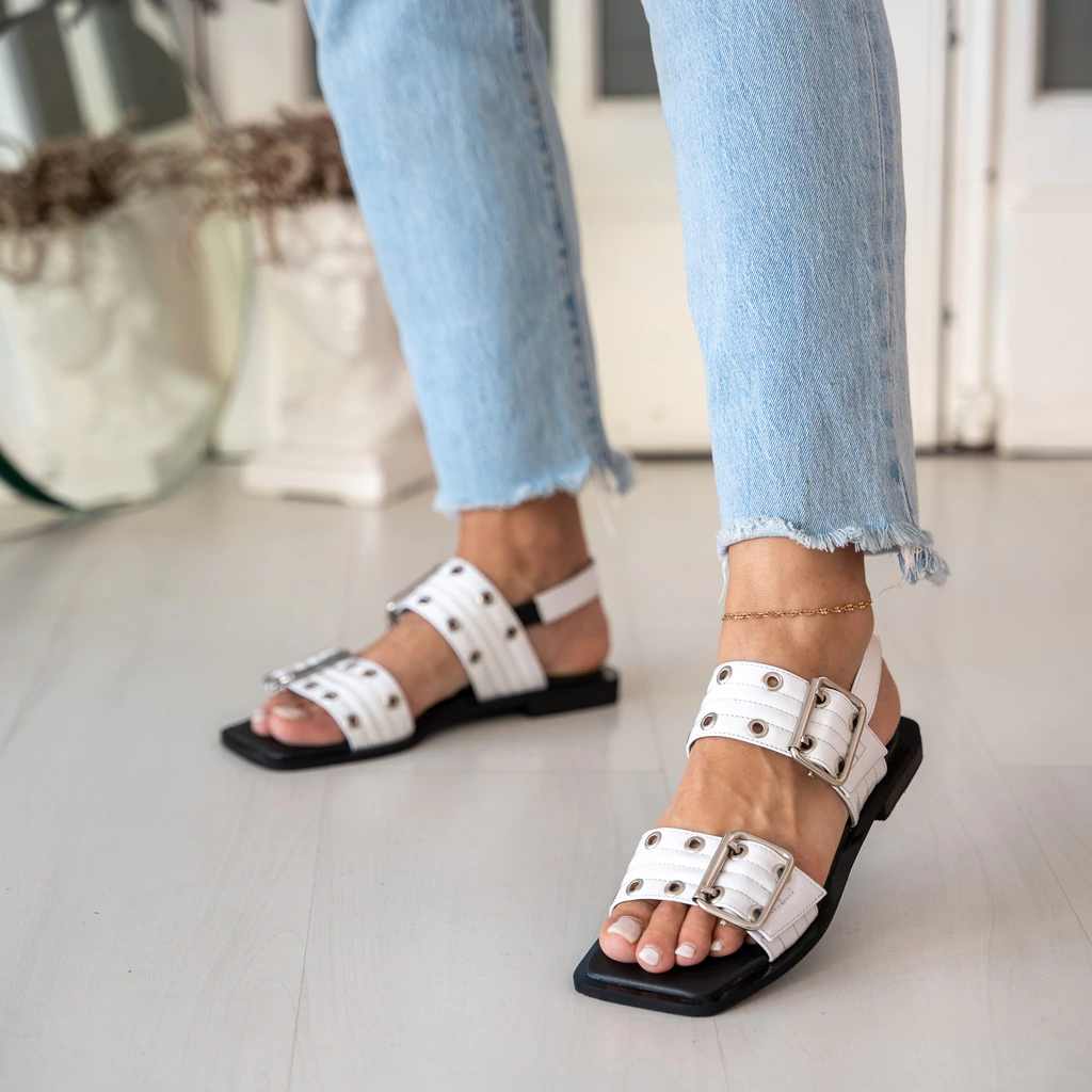Las Sandalias de Charol de Cuero Blanco con Arandelas Plateadas y Hebillas son el equilibrio perfecto entre elegancia y comodidad. Su diseño sofisticado destaca por las arandelas plateadas que aportan un toque distintivo. Con una confección de alta calidad, estas sandalias son ideales para realzar cualquier atuendo, ya sea casual o formal. Su versatilidad te permitirá lucir espectacular en diversas ocasiones.