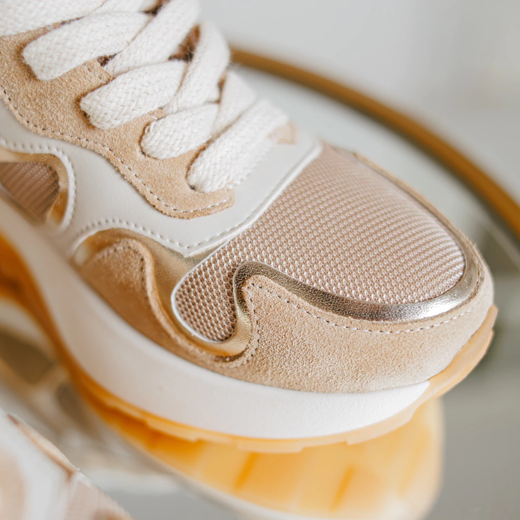 CARACTERÍSTICAS Las Zapatillas Valen Beige están diseñadas especialmente para la mujer moderna, combinando cuero y tela en un elegante color beige con detalles en platino. Su diseño cómodo y liviano las convierte en la opción perfecta para el día a día. La suela de expanso proporciona un soporte ideal, dándole un toque muy fresco a tu look.